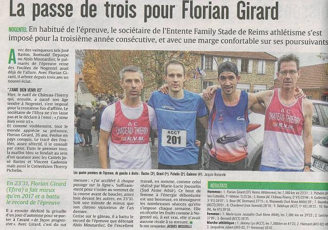- Dimanche 2 décembre 2018 : 18e course de Noel de Château-Thierry / Compétition en salle à Nogent sur Oise