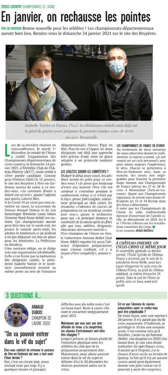 - Championnats de l’Aisne de cross country le 24 janvier 2021