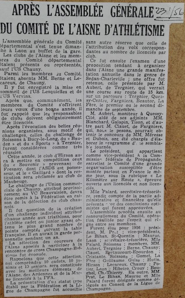 1956 : Après AG du Comité de l’Aisne d’Athlétisme