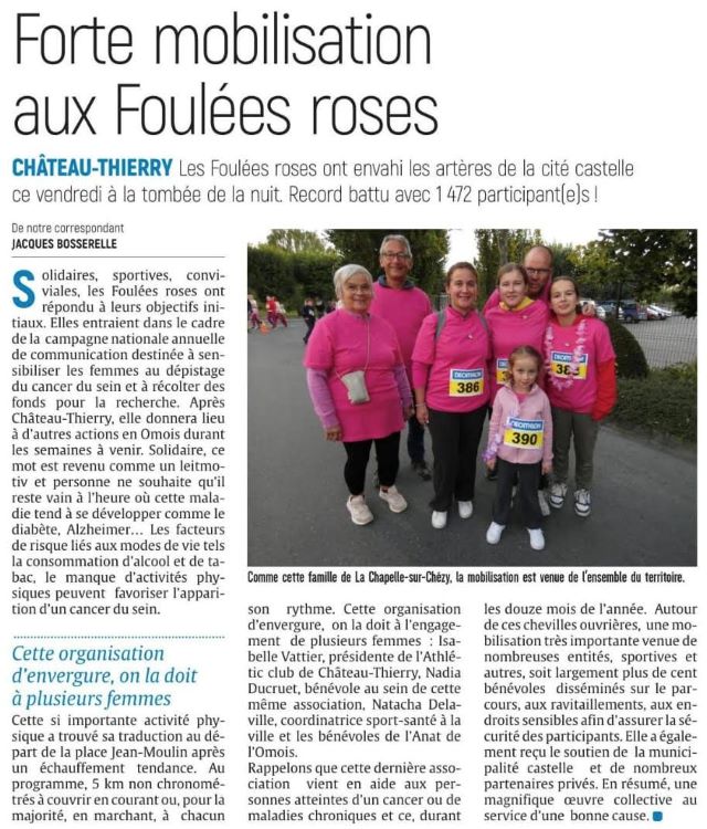 Un grand MERCI également à notre présidente Isabelle Vattier ainsi qu’à Nadia Ducruet pour l’investissement sans faille qu’elles renouvellent chaque année avec Natacha Delaville autour de ces Foulées Roses ! Edition plus que réussie !