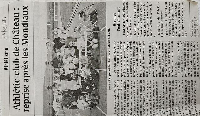 Athlètic Club de Chateau : reprise après les mondiaux