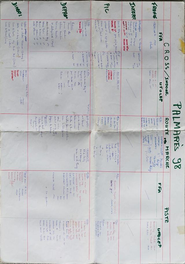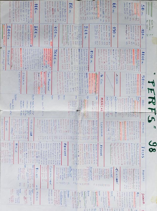 Le tableau des perfs 1998 et le palmarès 1998