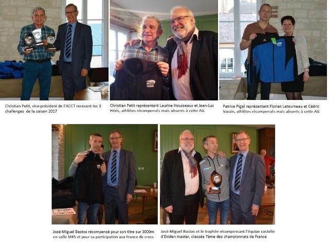 4 membres de l’ACCT étaient présents à cette Assemblée Générale organisée par le club de Bucy les Pierreponts : Christian Petit représentant l’ACCT en tant que vice-président du Club, José Bastos en tant qu’athlète récompensé, Florence Bastos ainsi que Patrice Pigal en tant que membres du Comité de l’Aisne d’athlétisme. A cette occasion Laurine Housseaux, Jean-Luc Héris, José Bastos, Florian Letourneau, Cédric Varain et l’équipe master d’Ekiden y ont été récompensés pour leur performance au niveau national.
