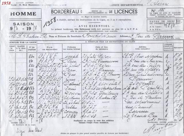 Retrouvez ci-dessous le bordereau des licences du club d’athlétisme de Château-Thierry datant de 1956.