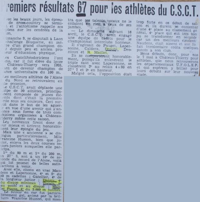 - 1967 : Championnats de l’Aisne d’athlétisme